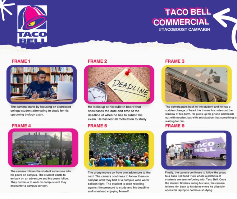 Yusra's client, Taco Bell, shared a brief requesting research, a new narrative, and sample marketing materials to attract Gen Z students.