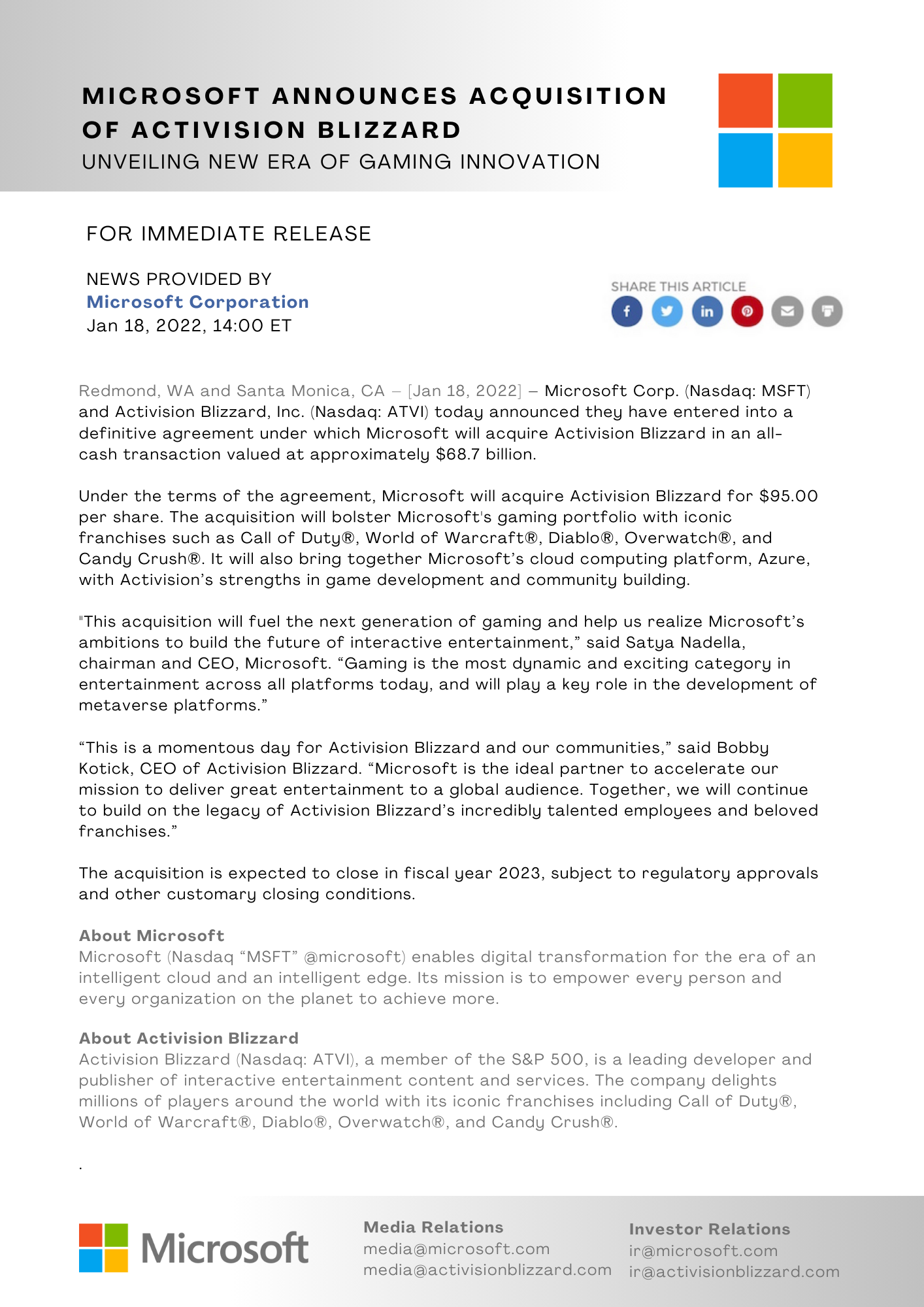 Yusra's client, Activision, was facing the challenge of being acquired by Microsoft. Yusra and her team created a research-informed, thorough strategic communication plan to effectively communicate the transition to key internal and external stakeholders via the appropriate media channels.